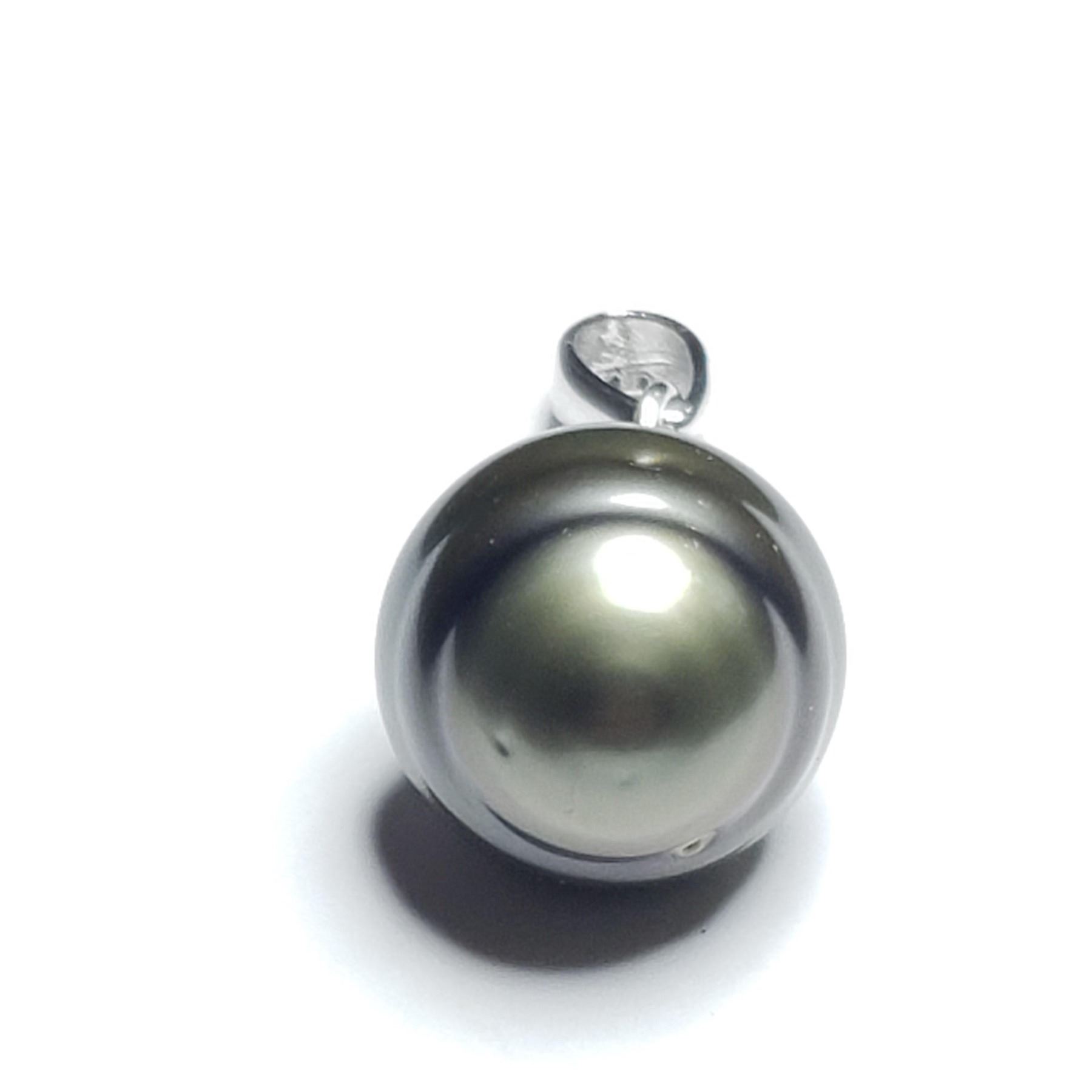 SILVER GENUINE TAHITIAN PEARL, CZ 13-14MM PENDANT