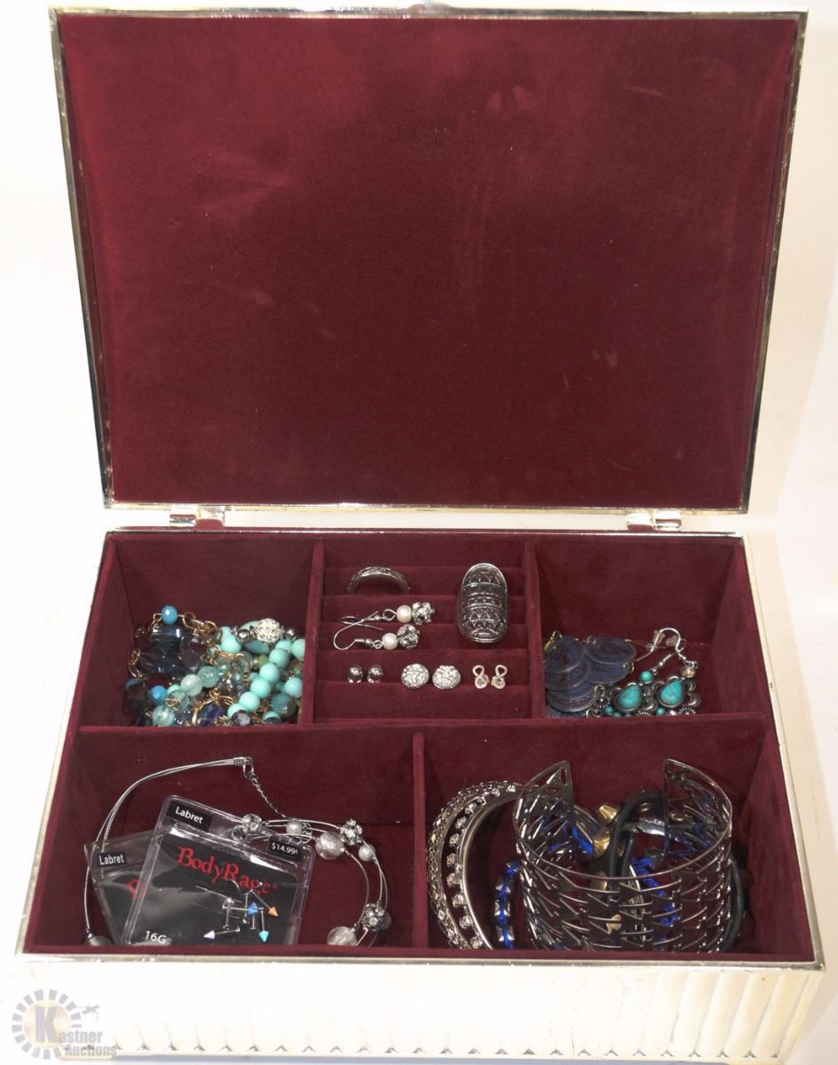 SILVER JEWELLERY BOX FULL OF JEWELLERY