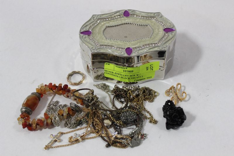 SILVER JEWELLRY BOX W / CONTENTS ( BLACK VELVET )