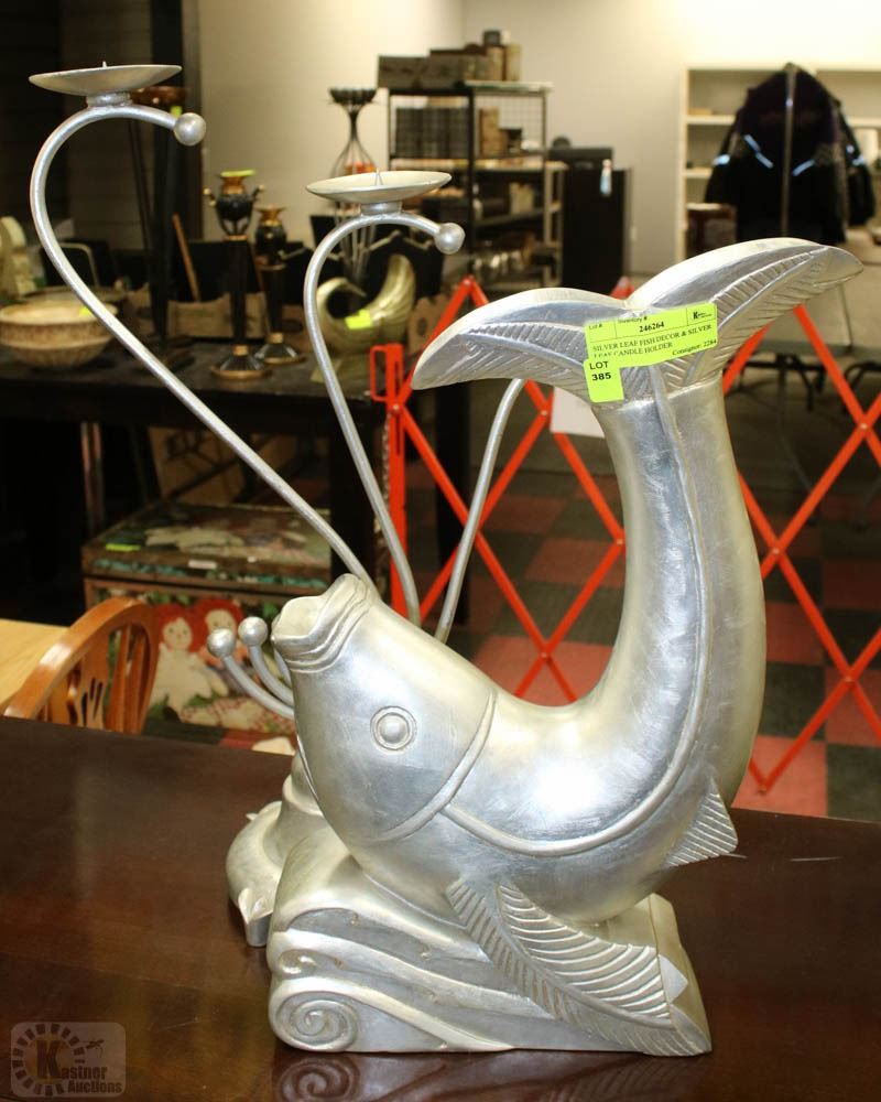 SILVER LEAF FISH DECOR & SILVER LEAF CANDLE HOLDER