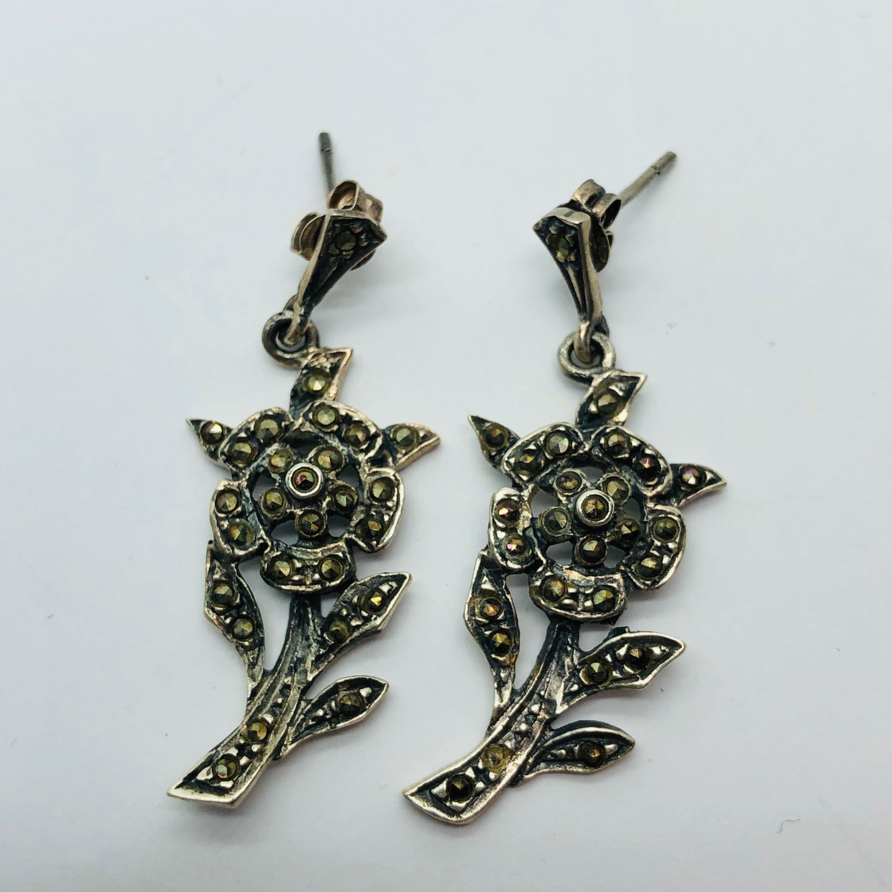 130 - CR142: CODE 2470 - E40: SILVER MARCASITE ANTIQUE DESIGN EARRINGS