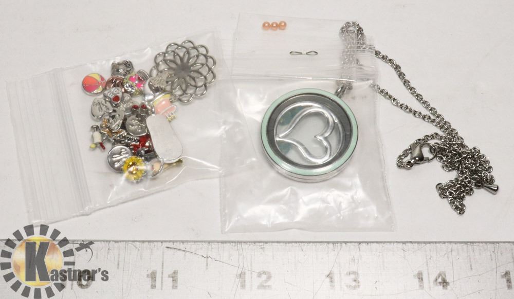 "BRAND NEW IN PACKAGE SOUTH HILL DESIGNS: LARGE MINT AND SILVER TONE FLOATING CHARM GLASS LOCKET W/CHAIN & EXTRA CHARMSINSIDE LOCKET: SILVER HEART SCREEN AND 3 SWAROVSKI MINT CRYSTALSEXTRA ITEMS INCLUDED FOR SWAPPING IN AND OUT: FLIP FLOPDROPLET, SILVER FLOWER SCREEN, FAUX MINI PEARLS & THE FOLLOWING CHARMS: SILVER WEDDING RING, PALM TREE, SILVER SAND DOLLAR, PINK BIRTHDAY CAKE, SILVER SEASHELL, POKER CHIP, SUNFLOWER, PINK ""HOPE"" HEART, ORANGE MAPLE LEAF, CELL PHONE,MARGARITA, SILVER ELEPHANT, BEACH BALL, MIMOSA, PARTY BALLOONS, SUGAR SKULL, POLICE BADGE, SILVER ""FAMILY"" HEART, I LOVE MY CAT, PUMPKIN, BRONZE MAPLE LEAF, CRYSTAL CHERRIES, DIPLOMA, CHRISTMAS STOCKING. - JEWELLRY"