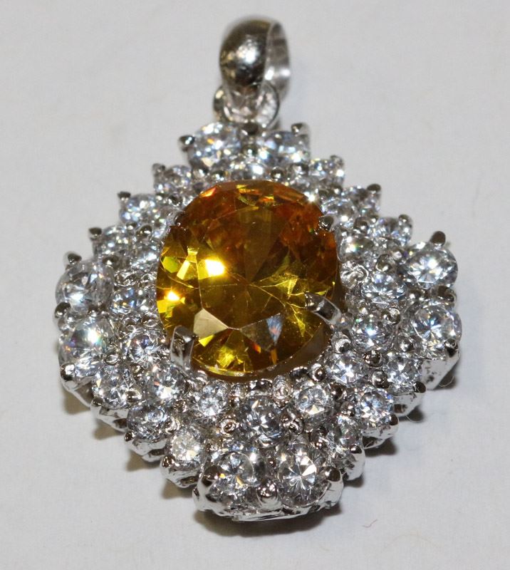 SILVER PENDANT .999% - LAB-CITRINE AND CZ 9.6G