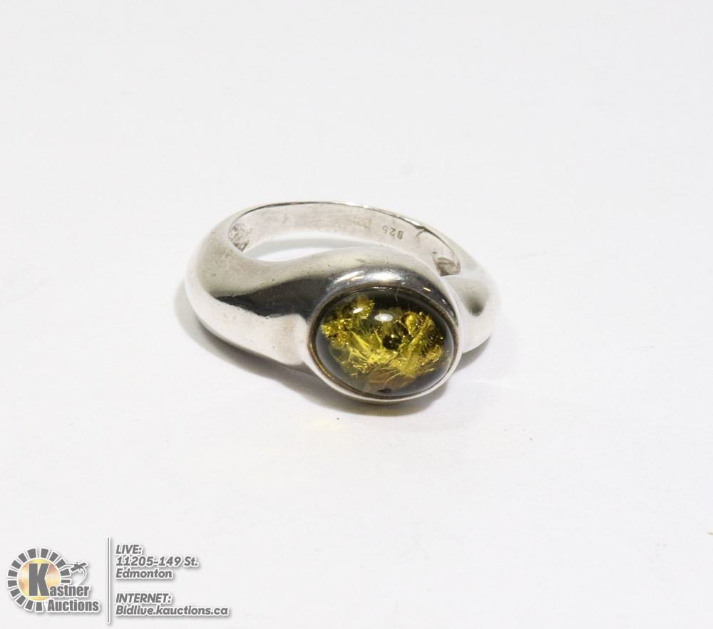 925 SILVER RING WITH SMOKY QUARTZ STONE. SIZE 6 1/2