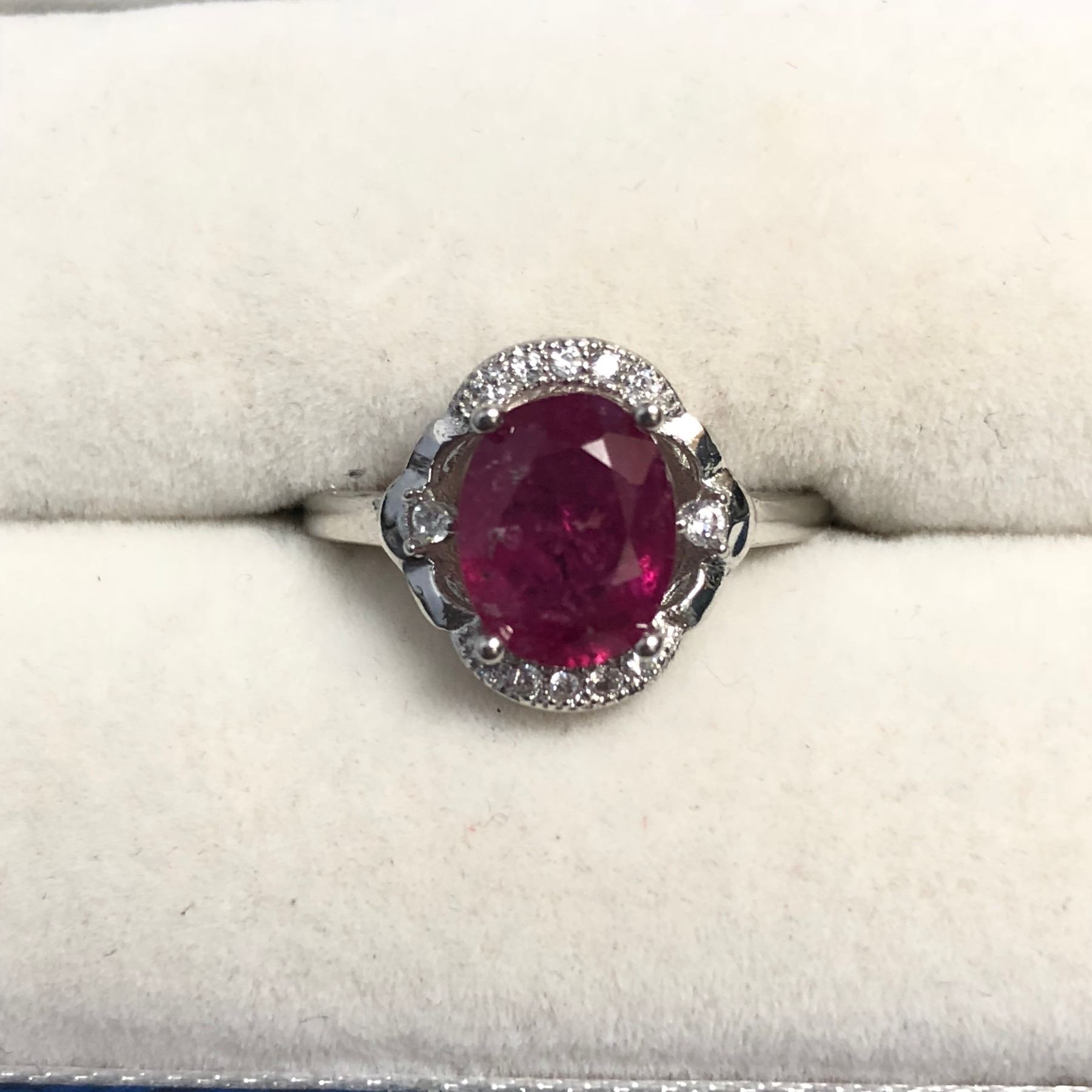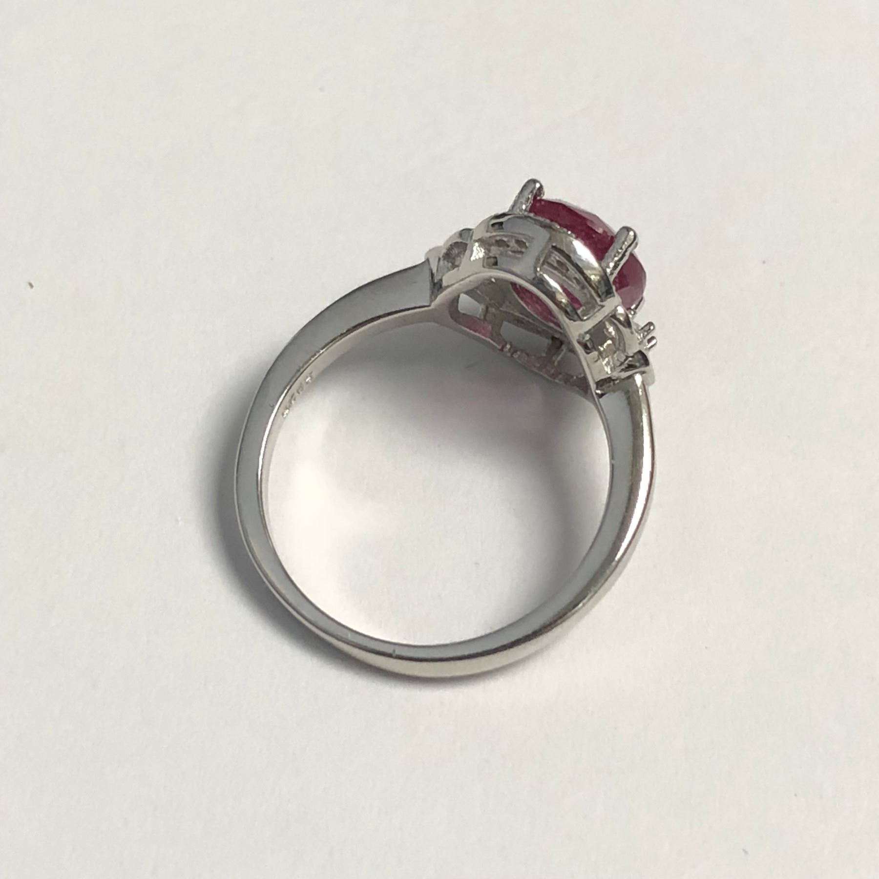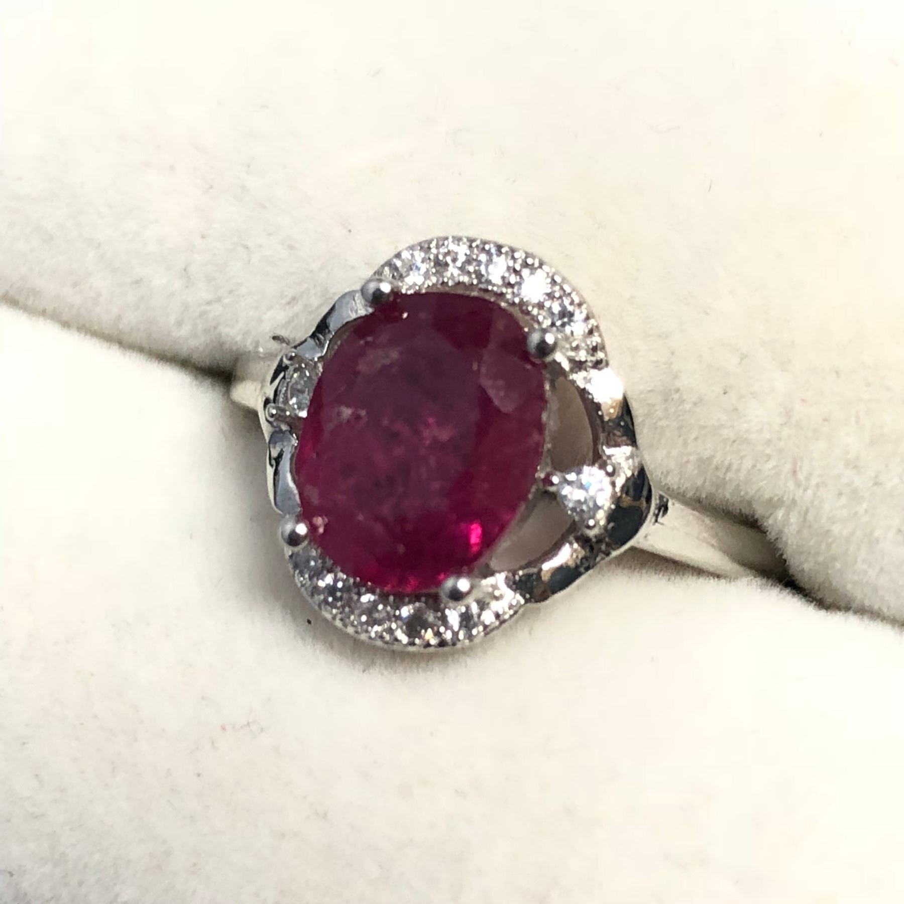 S. NO. 128 - DN49: SILVER RUBY CUBIC ZIRCONIA RING.