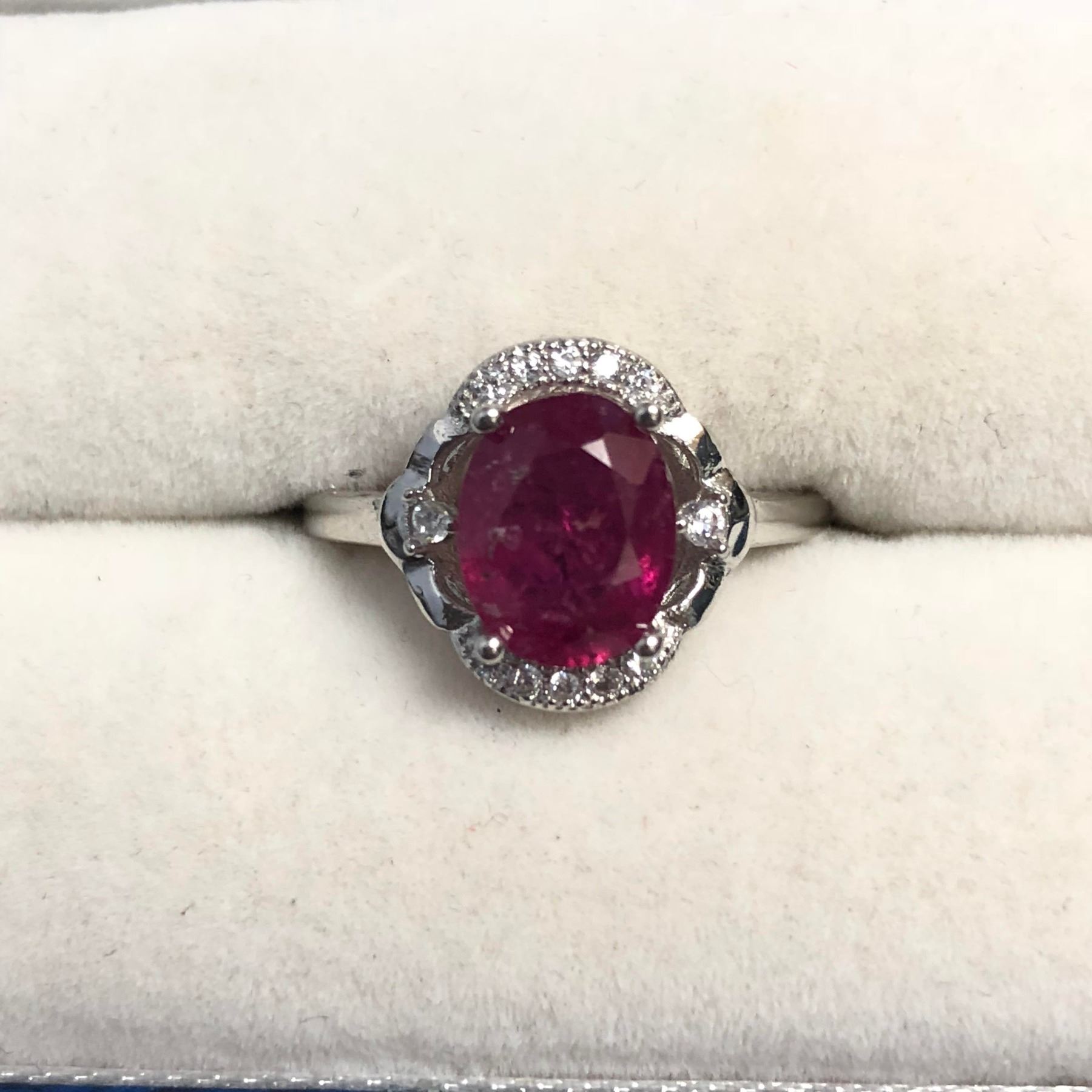 S. NO. 128 - DN49: SILVER RUBY CUBIC ZIRCONIA RING.