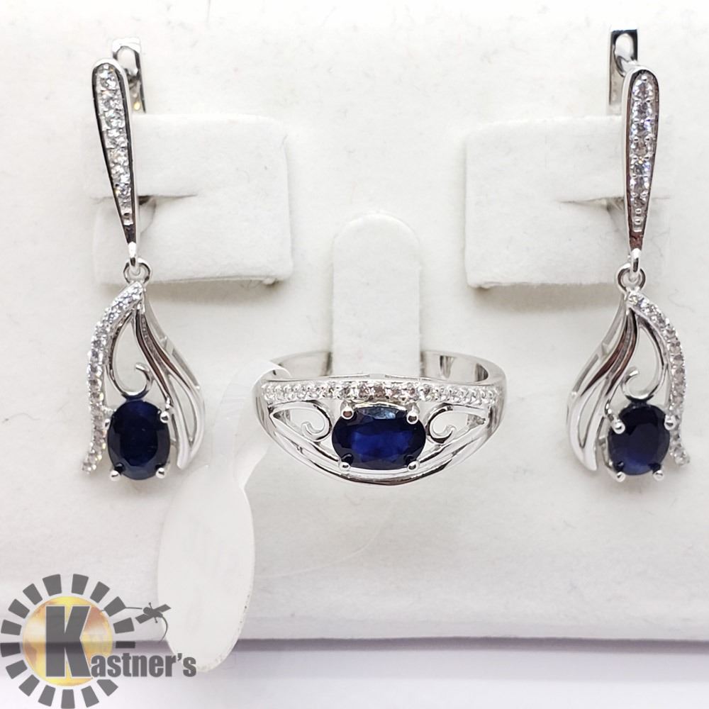 S. NO. 142 - JT70:M150 - SILVER SAPPHIRE AND CZ RING AND EARRING (8G) SET