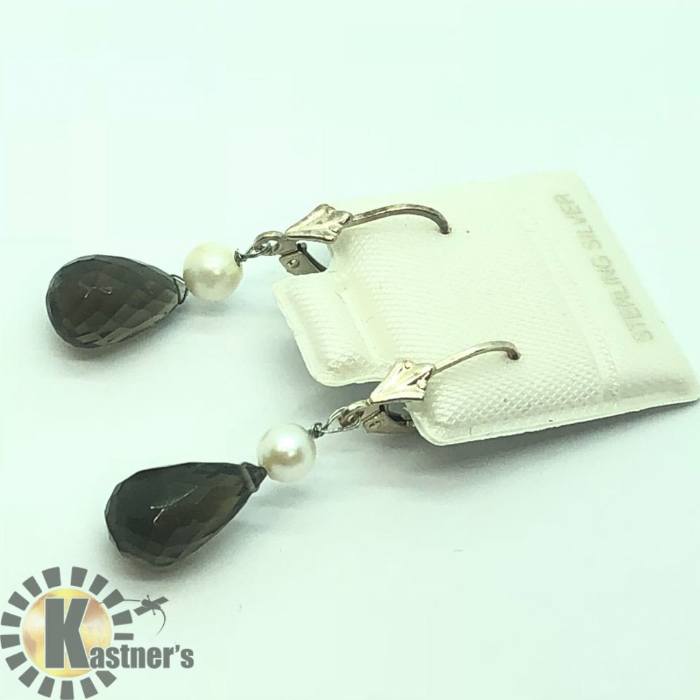 170 - CR207; E20: SILVER SMOKEY QUARTZ AND PEARL EARRINGS, MADE IN CANADA