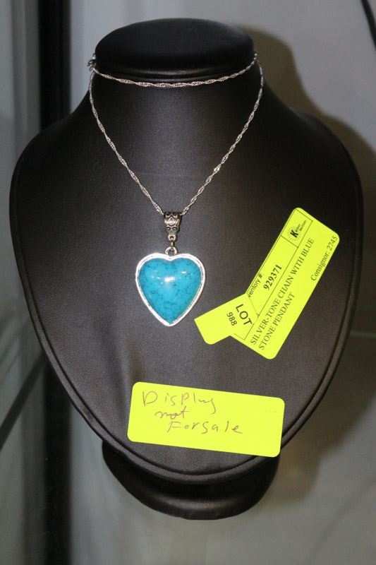 SILVER-TONE CHAIN WITH BLUE STONE PENDANT
