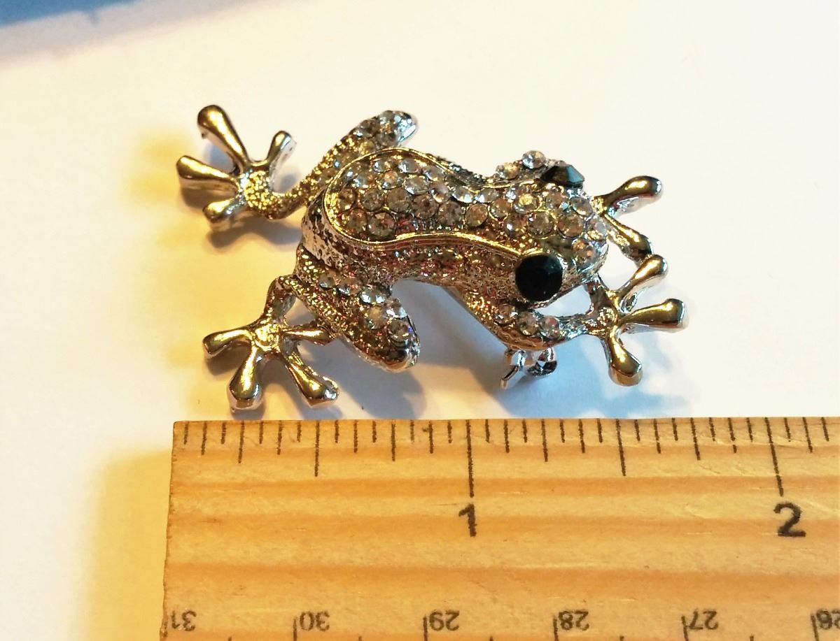 SILVER TONE CRYSTAL FROGGY BROOCH