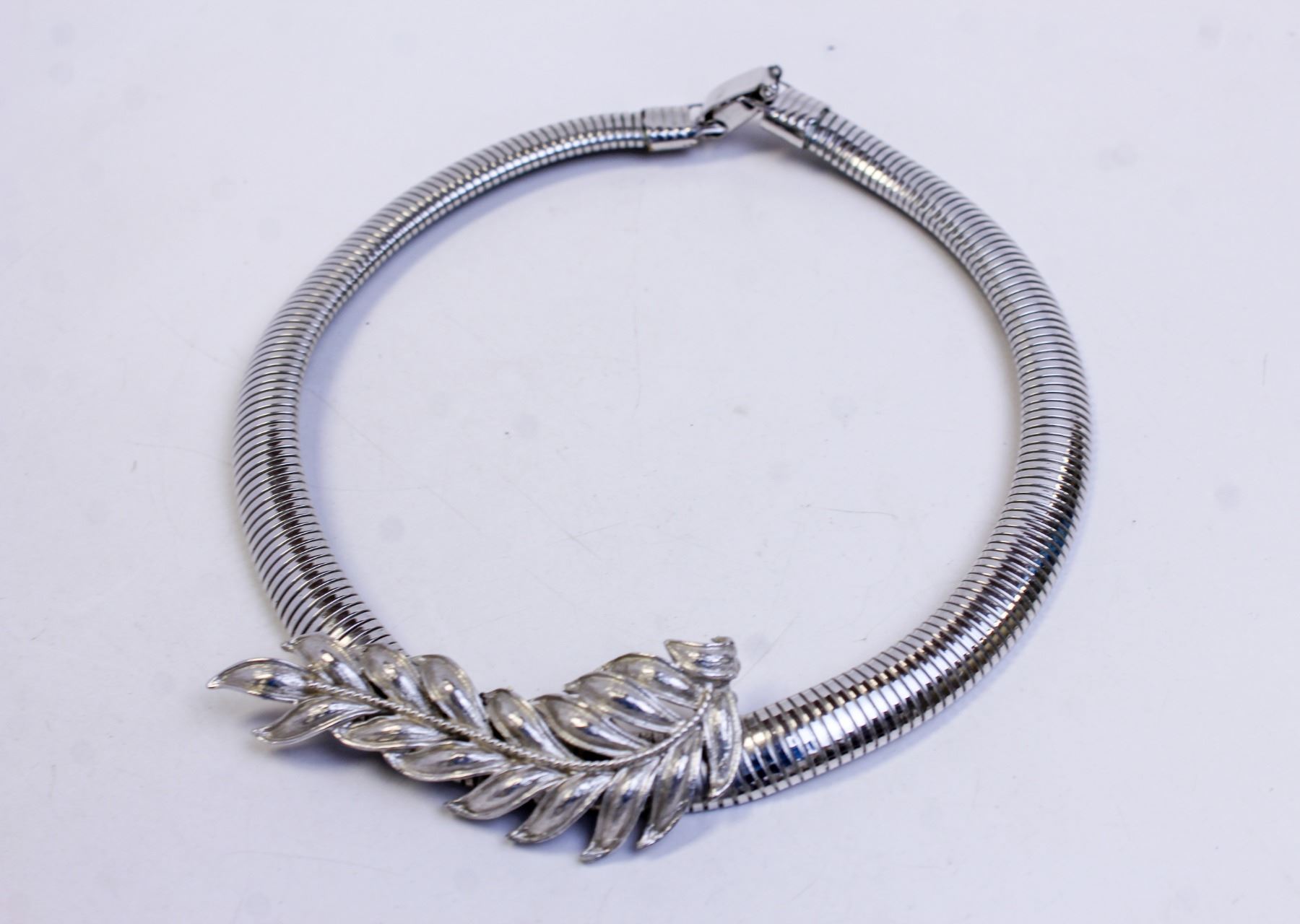 SILVER TONE FLEX NECKLACE WITH LEAF