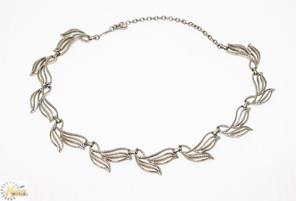 SILVER TONE LEAF LINK NECKLACE