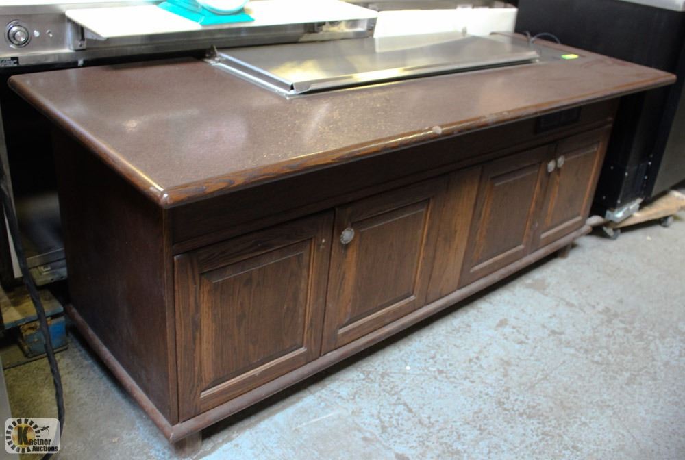 REFRIGERATED TOP ACCESS UNIT, WOOD CUPBOARD CABINET, PREP-COUNTER. 83" X 31-1/2" X 33-1/4"