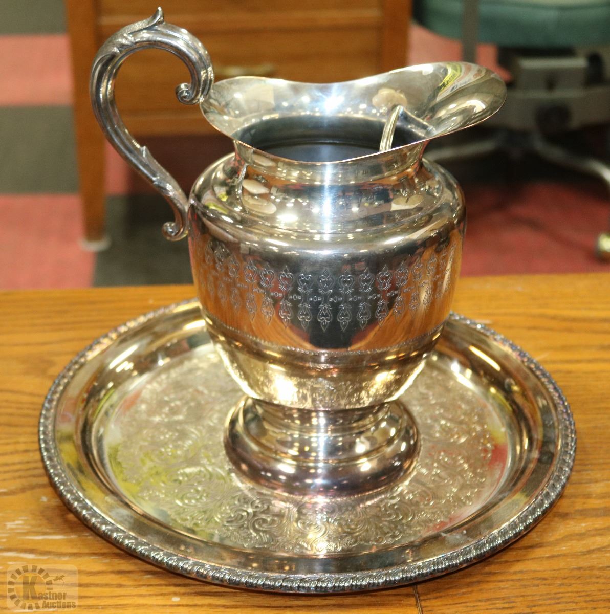 SILVERPLATED TRAY AND PITCHER