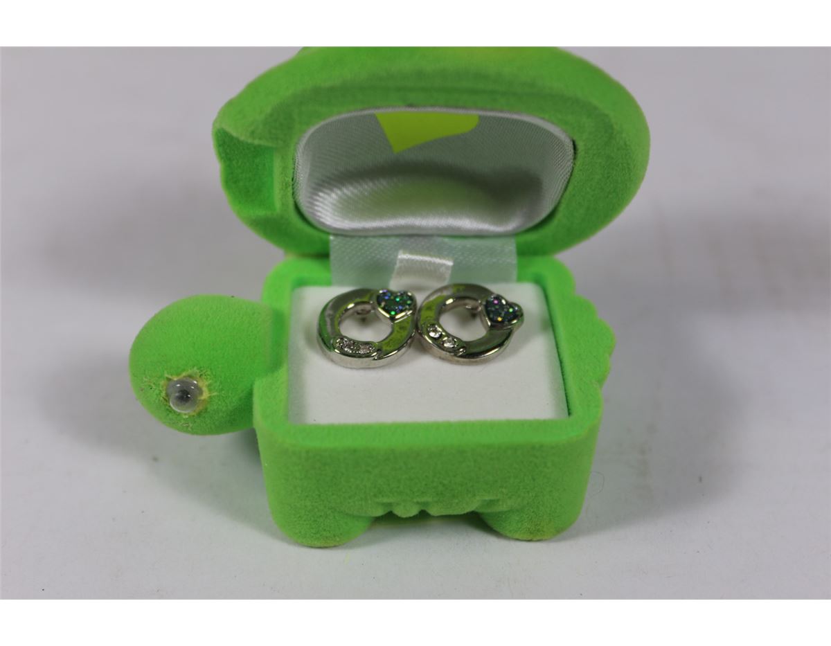 SILVERTONE CIRCLE & HEART EARRINGS IN TURTLE SHELL