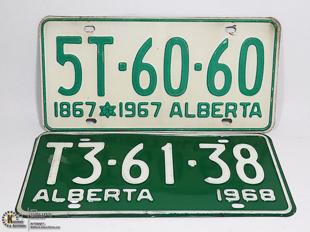 SINGLE 1967 AND 1968 ALBERTA LICENSE PLATES