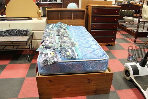 SINGLE MATES BED W 5 DRAWER CHEST OF DRAWERS INCL