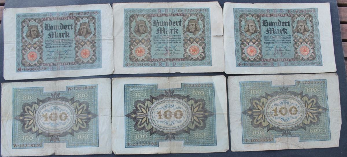 SIX 1920 GERMAN 100 MARK BANKNOTES
