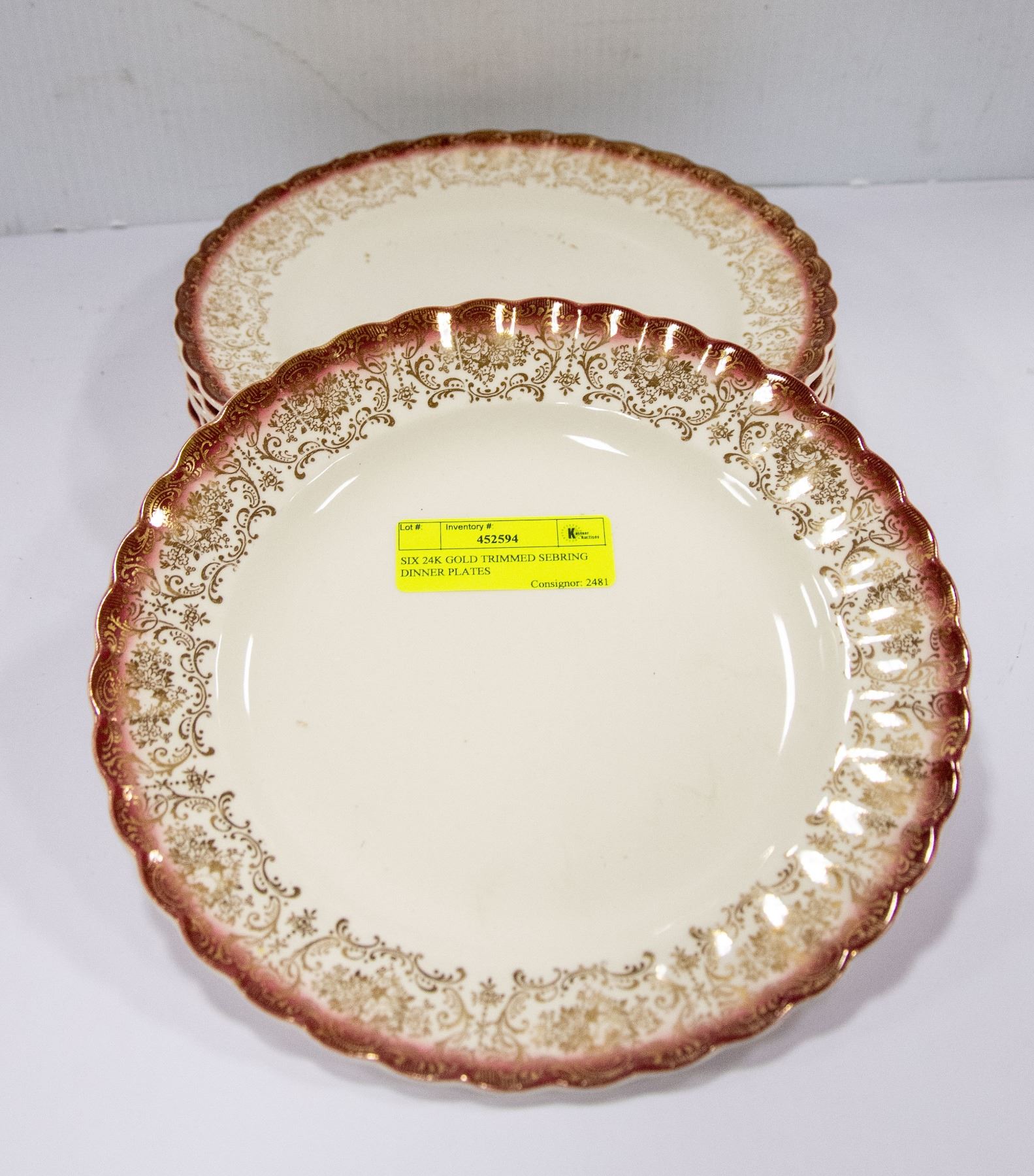 SIX 24K GOLD TRIMMED SEBRING DINNER PLATES