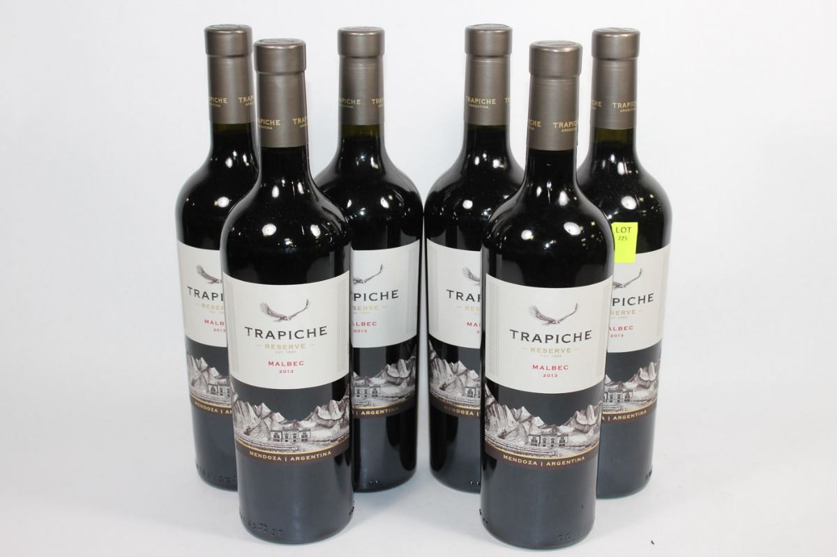 SIX 750ML BOTTLES OF TRAPICHE 2013 MALBEC 14%