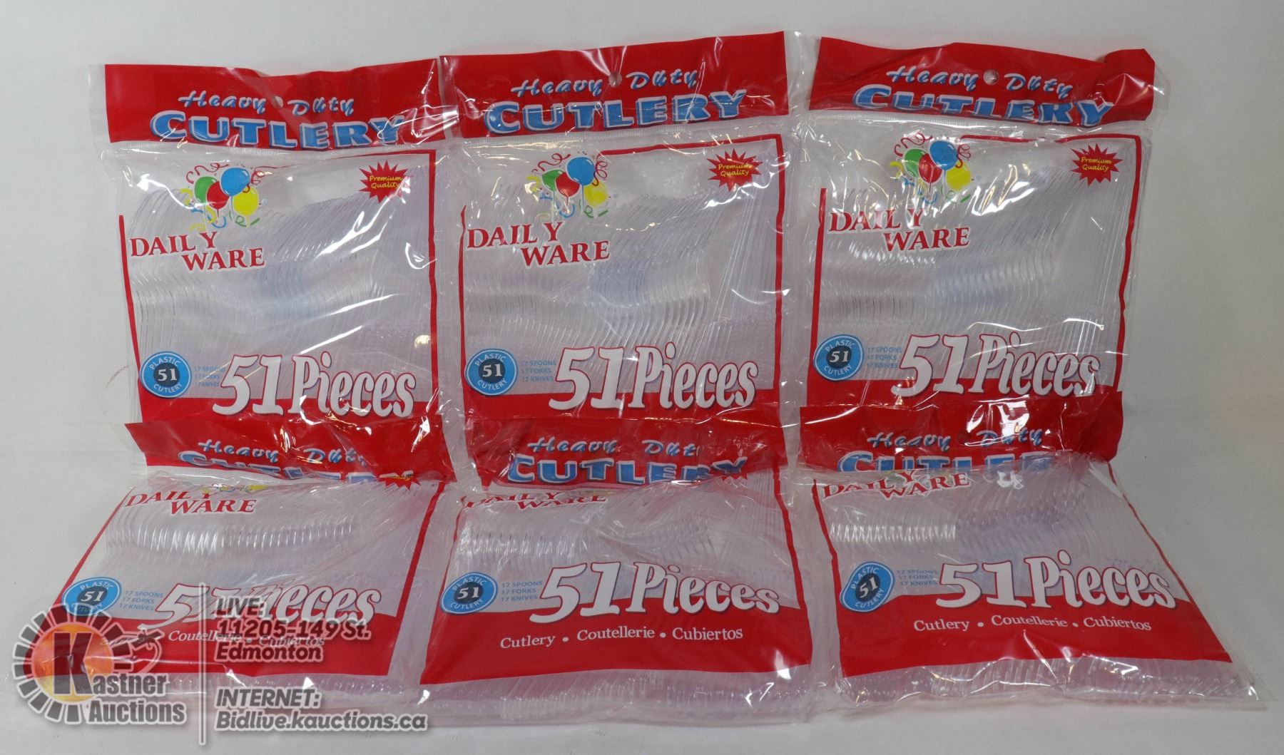 SIX BAGS OF 51PC CLEAR CUTLERY SETS
