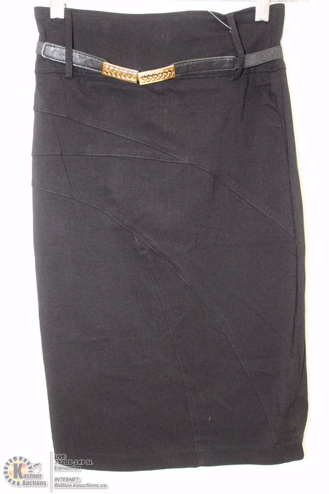 SIZE LARGE BLACK STRETCH PENCIL SKIRT, TOP KNEE