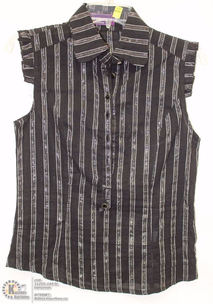 SIZE MEDIUM BLACK BUTTON UP TOP WITH SILVER PIN