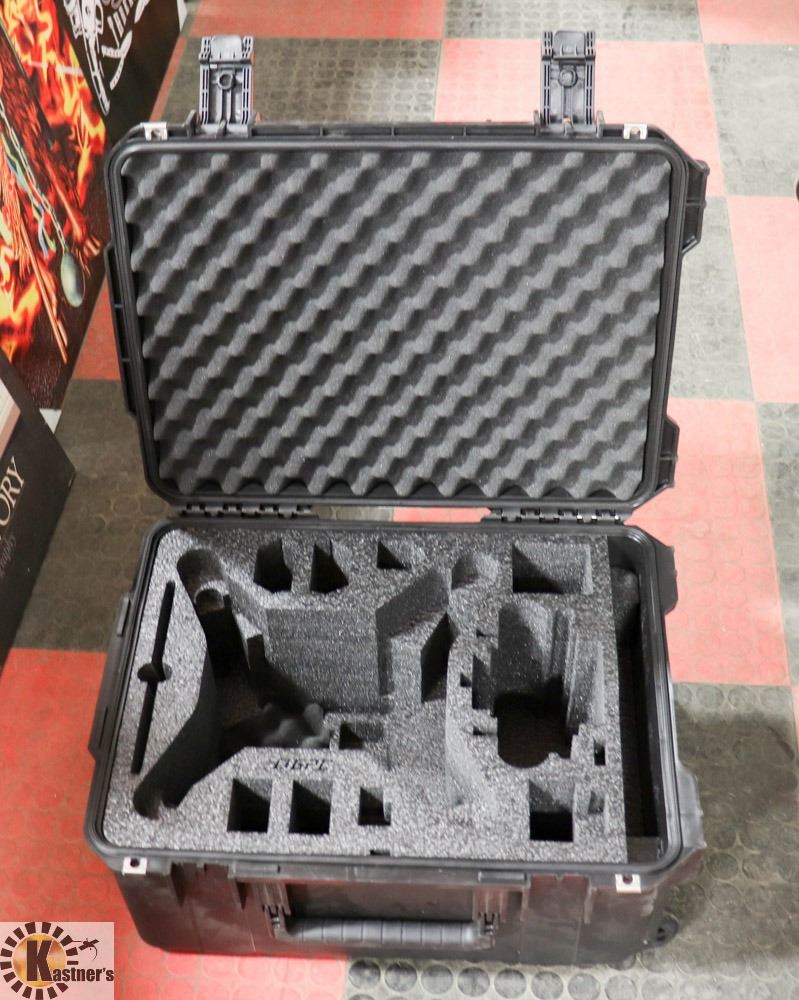 22X18X12. ON WHEELS. SUITCASE STYLE WITH A HANDLE. CAN BE USED FOR OTHER PURPOSES AS WELL. HOBBIES