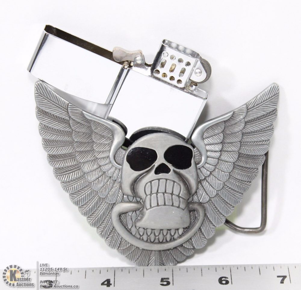 SKULL BELT BUCKLE WITH ZIPPO STYLE LIGHTER