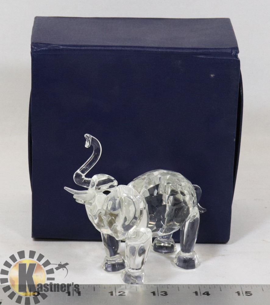 SMALL CRYSTAL RAISED TRUNKED ELEPHANT FIGURE