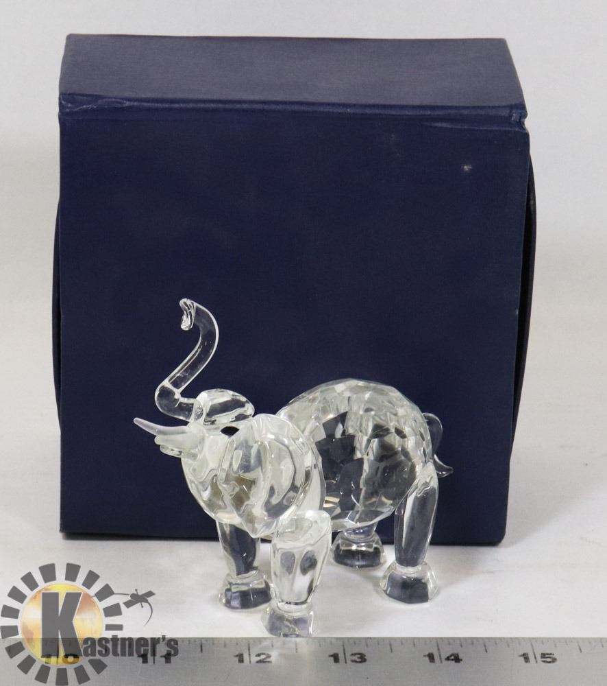 SMALL CRYSTAL RAISED TRUNKED ELEPHANT FIGURE