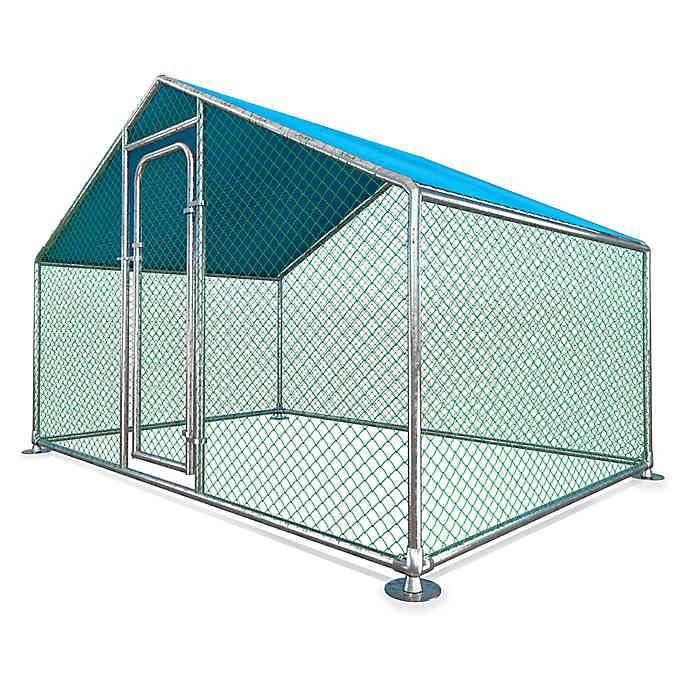 COVER IN BOX: UN-ASSEMBLED GALVANIZED METAL CHICKEN COOP, GALVANIZED DOOR WITH LOCK, WIRE MESH FOR FULLY ENCLOSED ROOF AND SIDES, WATERPROOF ROOF COVER, ASSEMBLY INSTRUCTIONS. MATERIAL: GALVANIZED TUBE CHICKEN COOP WITH CLOTHWATERPROOF COVER DIMENSIONS: 6.5 X 9.8 X 6.4 FEET WIRE MESH: COATED 1MM WIRE, SIZE APPROX. 35X35MM 32MM DIAMETER GALVANIZED STEEL TUBE COLOR: SILVER CHICKEN RUN WITH COVER (BLUE ORPURPLE DEPENDING ON STOCK)