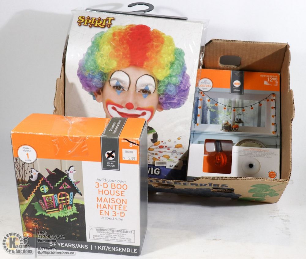 SMALL FLAT OF NEW HALLOWEEN SUPPLIES & WIG,