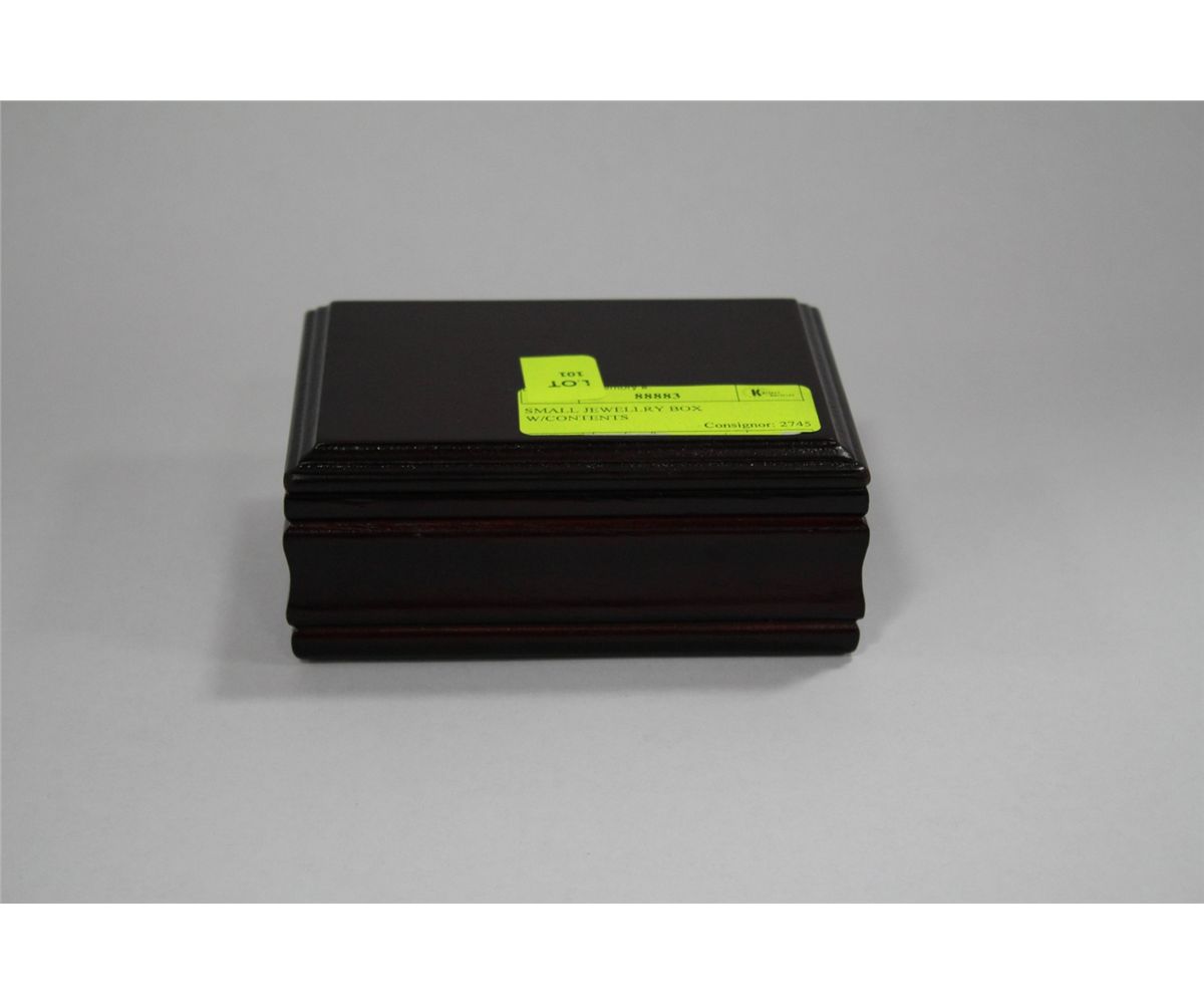 SMALL JEWELLRY BOX W/CONTENTS
