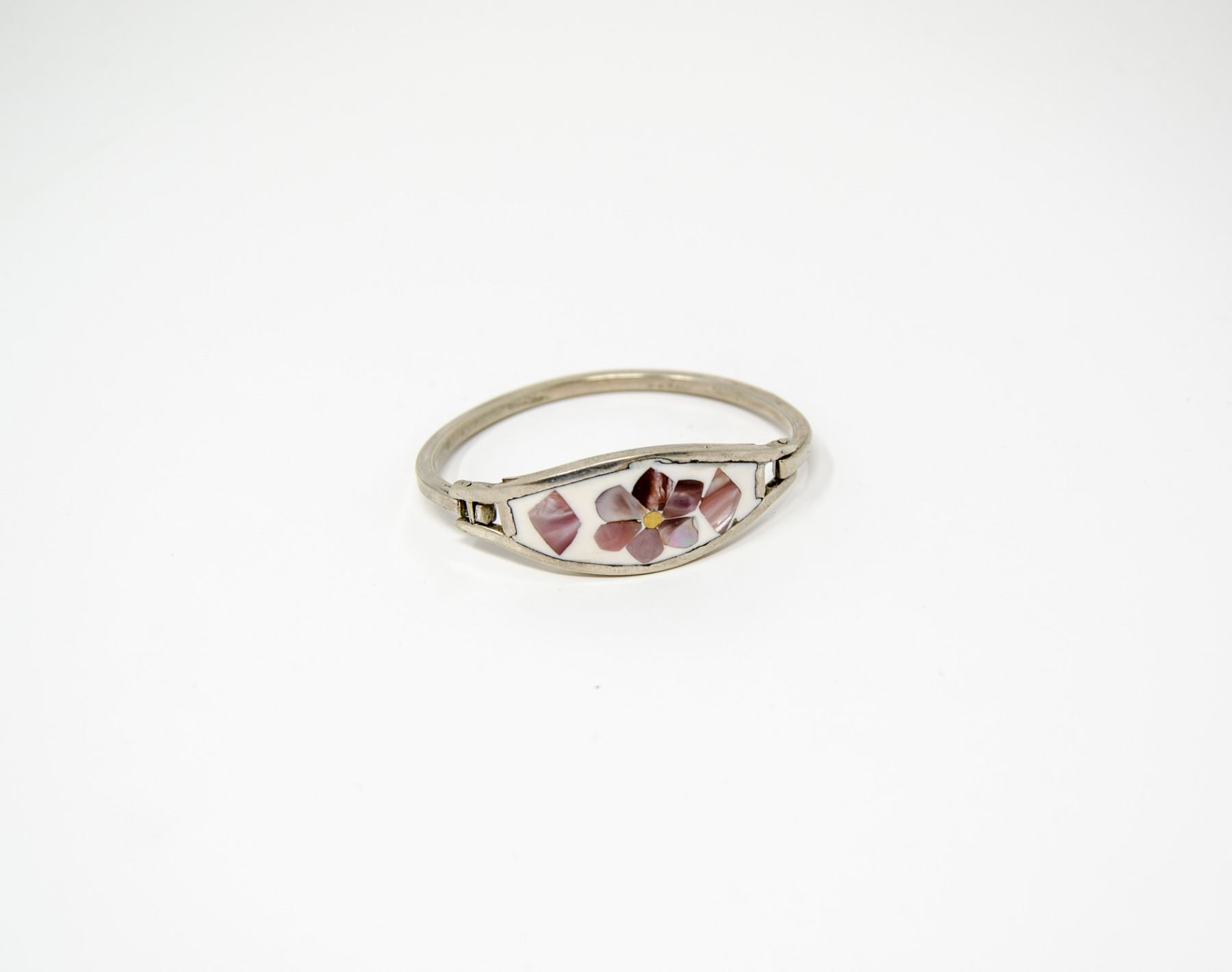 SMALL MEXICAN SILVER BRACELET WITH FLORAL INLAY