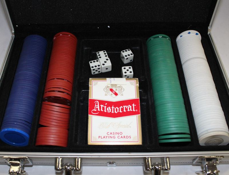 SMALL POKER CHIP SET W/ CARDS IN METAL CASE