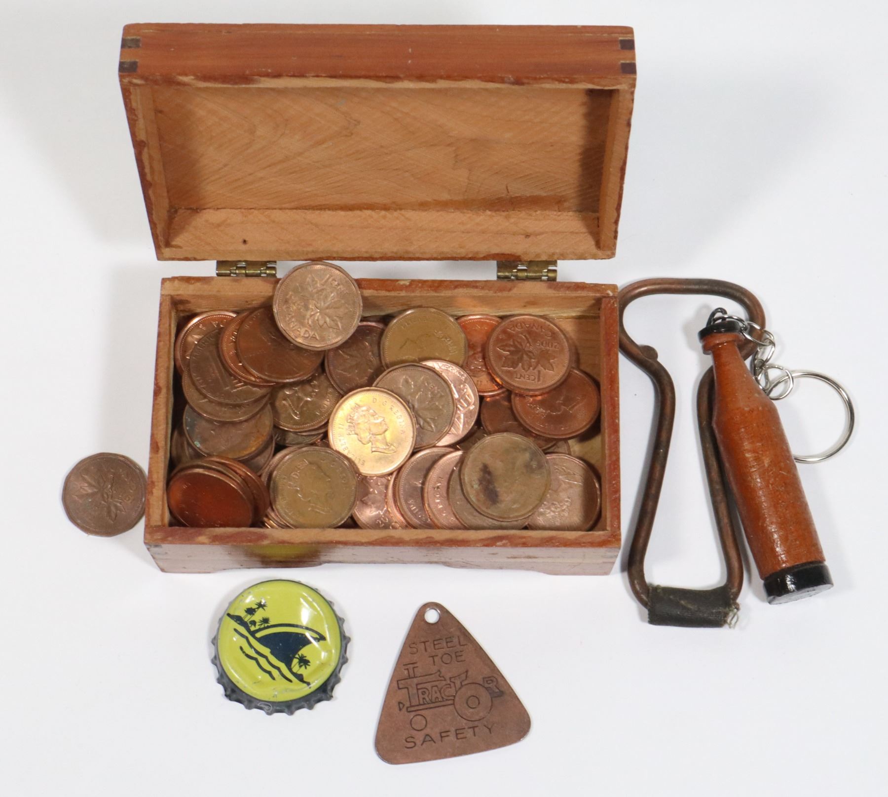 SMALL TRINKET BOX CONTAINING PENNIES, A BUCANERO