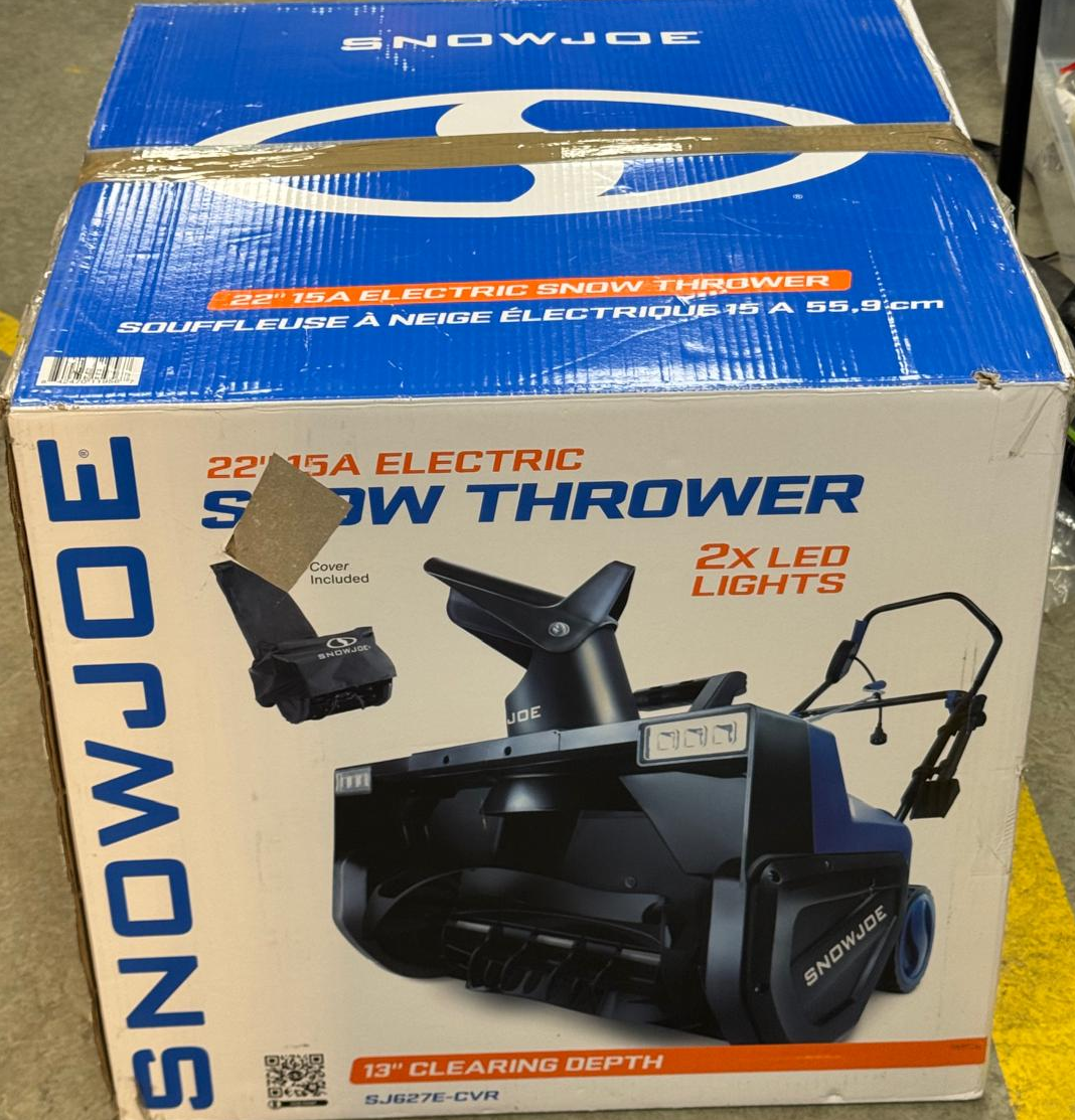 SNOW JOE SJ627E ELECTRIC SNOW THROWER, 22-INCH, 15-AMP, W/ DUAL LED LIGHTS (NEW)