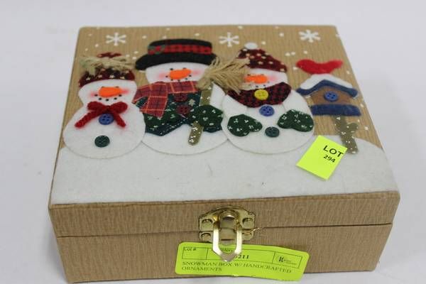 SNOWMAN BOX W/ HANDCRAFTED ORNAMENTS