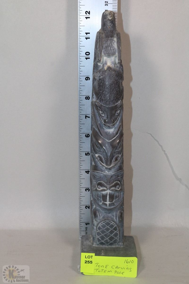 SOAP TONE CARVING TOTEM POLE 12"HIGH