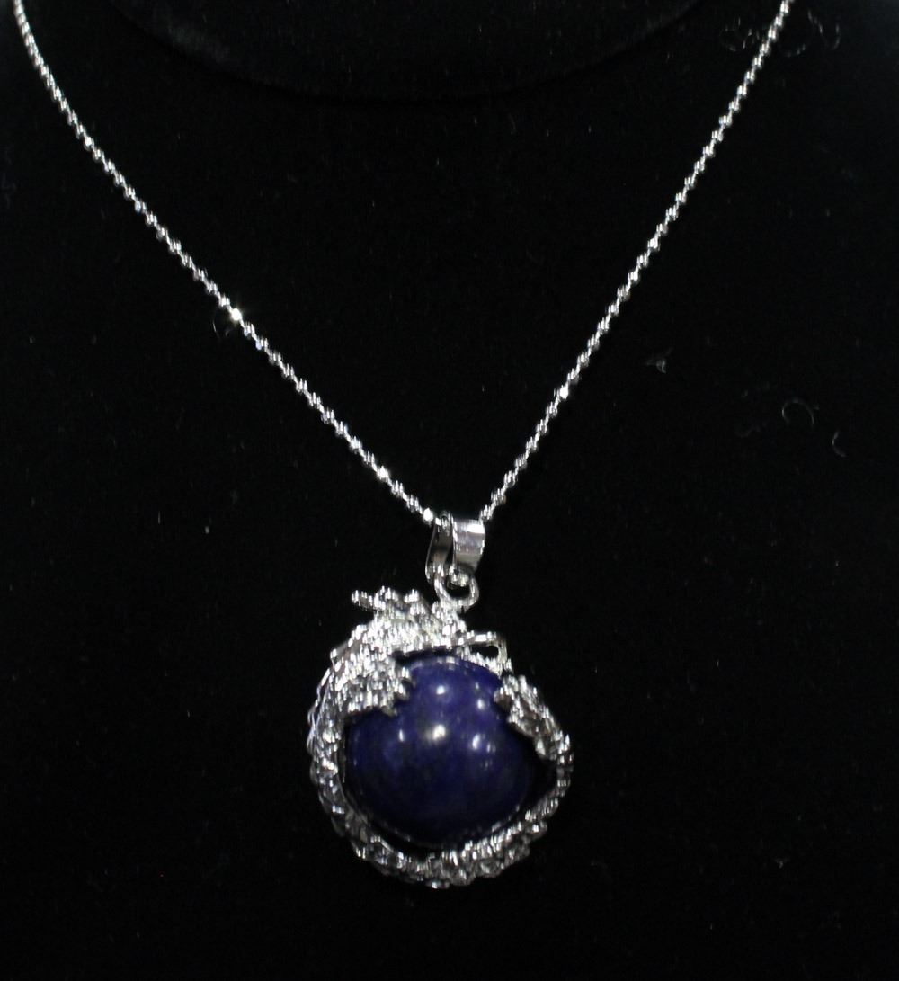 SODALITE STONE IN STAINLESS DRAGON NECKLACE 925