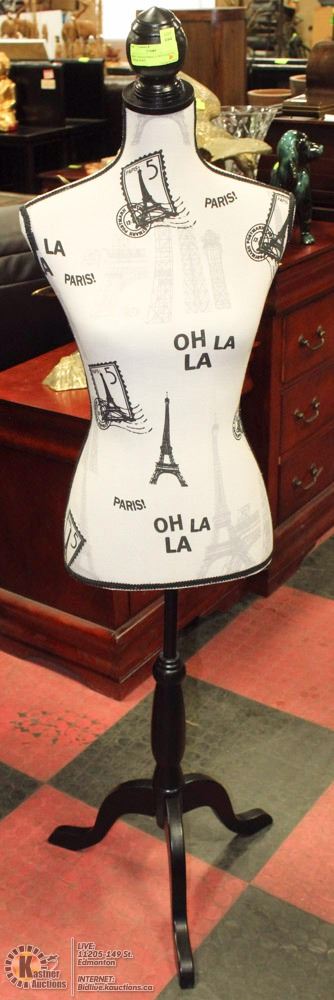 DRESS FORM - ON WOOD STAND - 58" TALL. HOUSEHOLD
