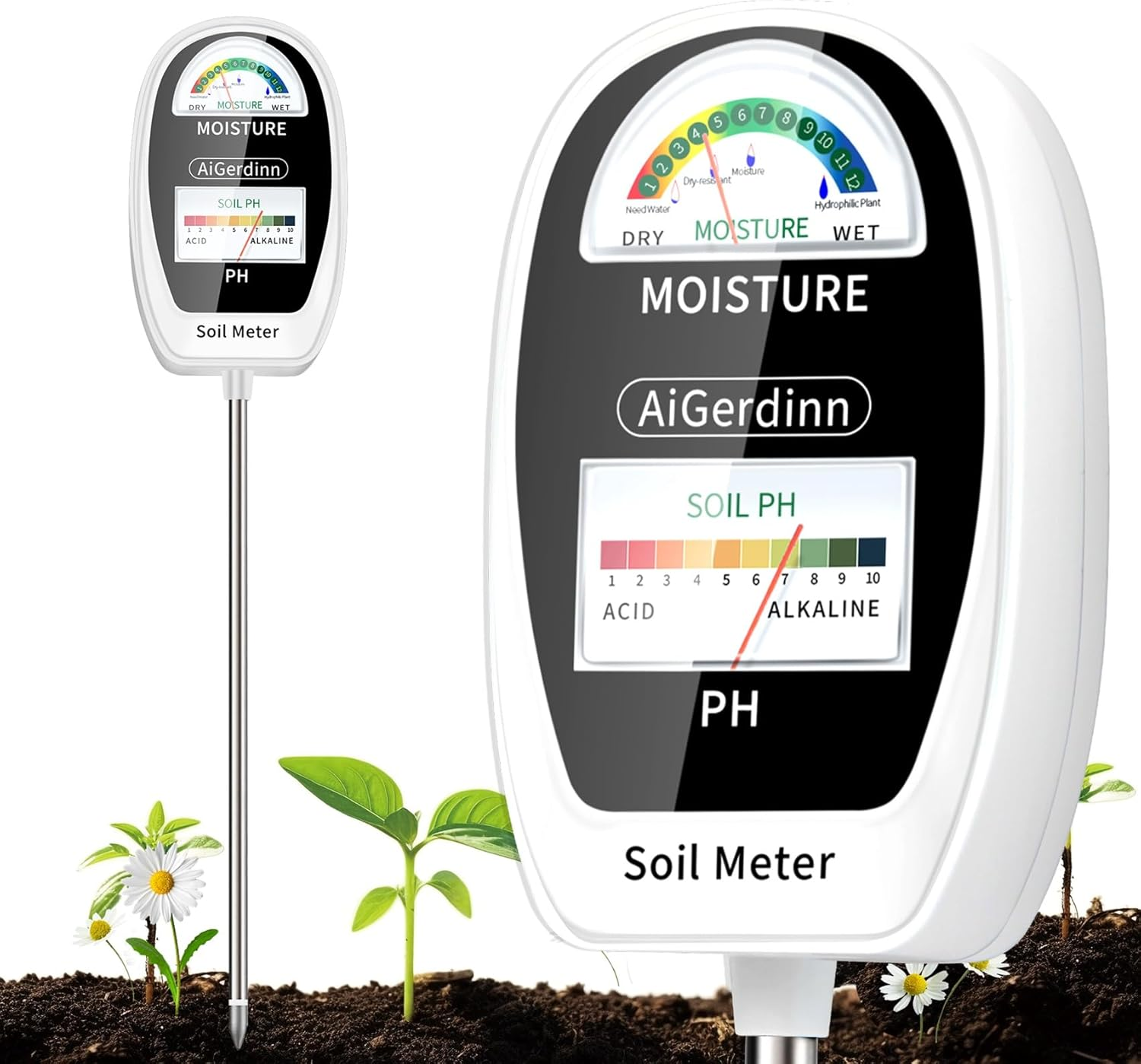 SOIL TEST KIT, 2-IN-1 SOIL MOISTURE METER, SOIL PH METER FOR PLANTS FOR GARDEN,LAWN,FARM INDOOR&OUTDOOR USE (WHITE)