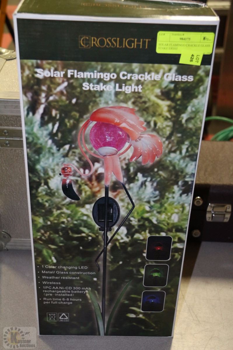 SOLAR FLAMINGO CRACKLE GLASS STAKE LIGHT