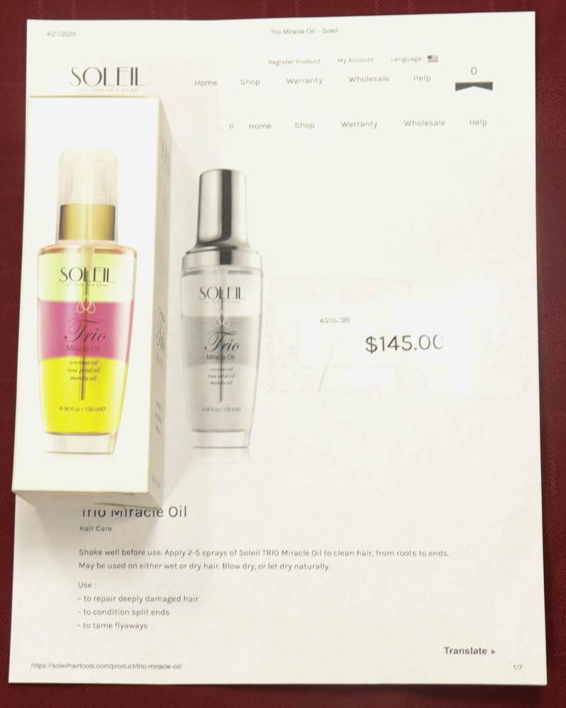 TREATMENT. COCONUT, ROSE PETAL & MARULA OIL. BOTTLE RETAILS FOR $145.00/EA.