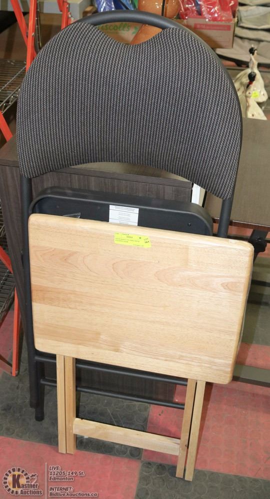 SOLID MAPLE TV TABLE WITH FOLDING CHAIR