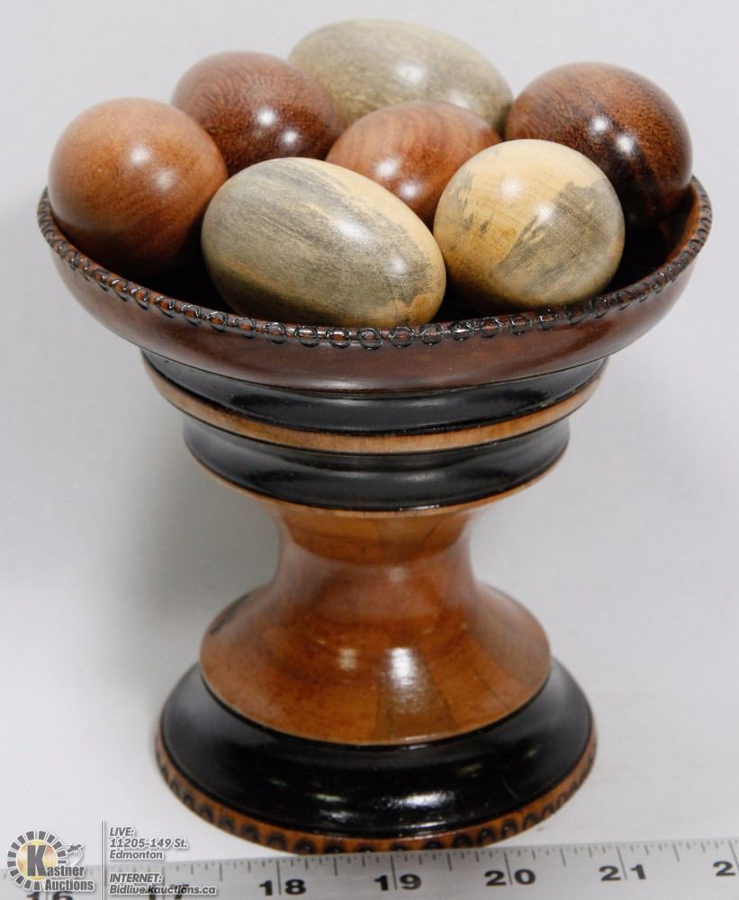 SOLID WOOD FRUIT EGG BASKET WITH WOODEN EGGS