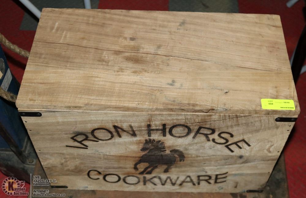 SOLID WOOD IRON HORSE COOKWARE CRATE