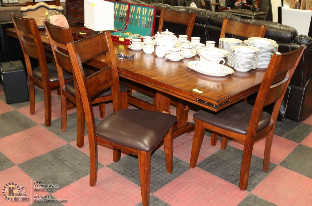 CHAIRS & 2 LEAFS (W/O LEAFS: 72"L X 44"W X 30"H) (LEAFS: 2 X 18" WIDE) - FURNITURE