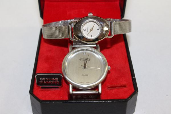 SOLITAIRE MEN'S WATCH & LADIES REVLON WATCH